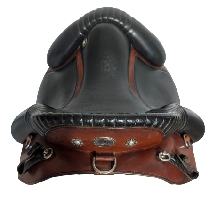 The broad seat makes this saddle comfortable for all day riding and interactive training. The upright sitting position allows for correct riding position. This saddle is used for PRE's, Lusitanos, and all other breeds Working Equitation, Classical Dressage (not USEF), baroque riding styles such as Spanish riding, Iberian, Portuguese, Peruvian. Trail and general riding, Parades, Costume
