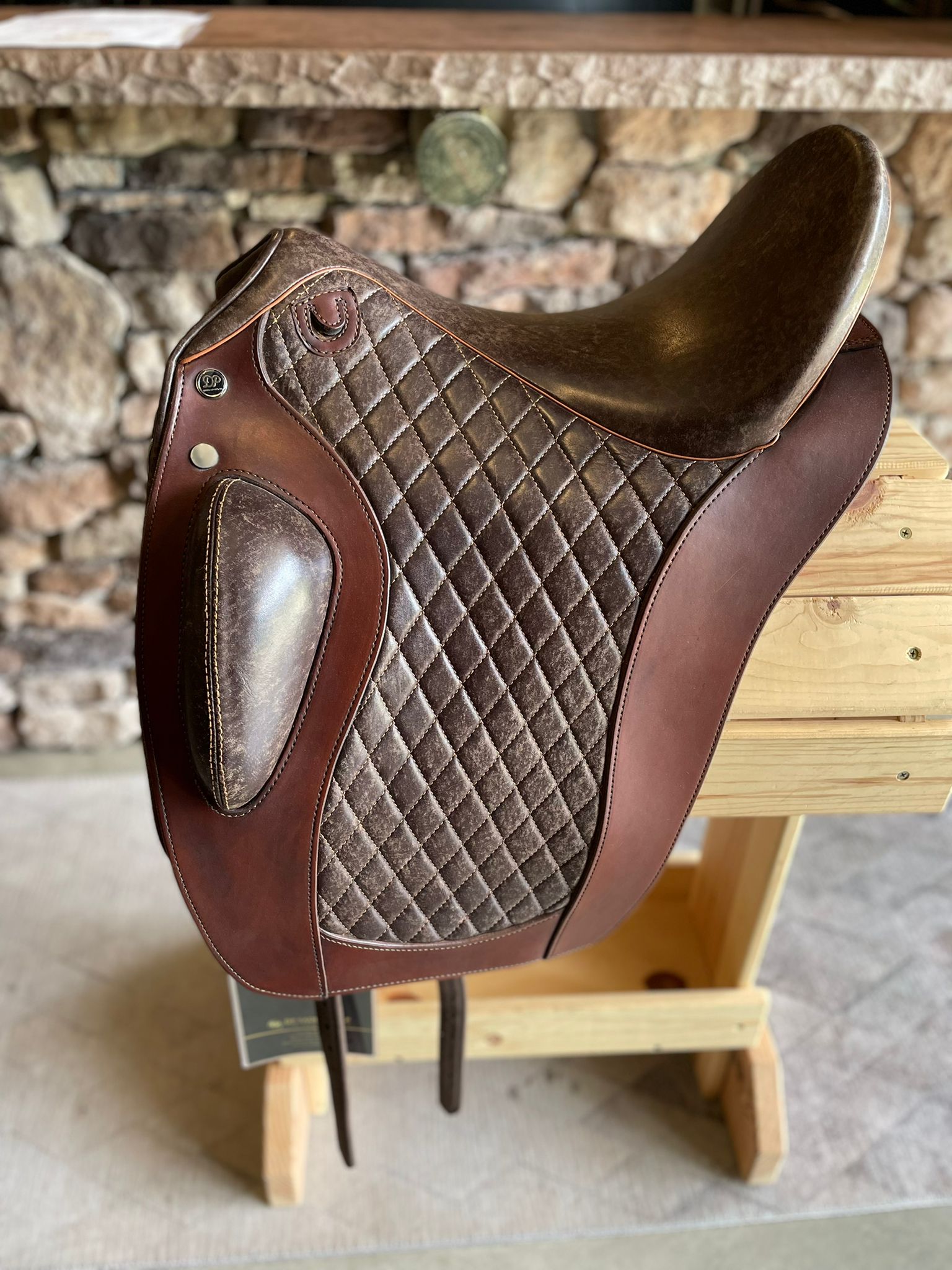The Bolero 3220 Dressage and 3110 Working Equitation versions (XT & DL). The panels are designed to be light around the scapula. The stylish squared flap has a soft leg area (SKL) that is quilted. The leg block is fixed and up out of the way of the knee.