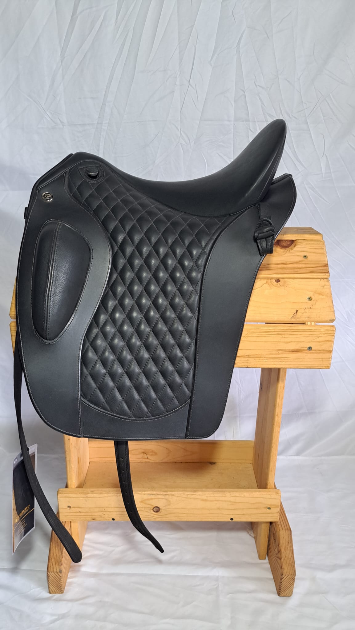 The Bolero 3220 Dressage and 3110 Working Equitation versions (XT & DL). The panels are designed to be light around the scapula. The stylish squared flap has a soft leg area (SKL) that is quilted. The leg block is fixed and up out of the way of the knee.