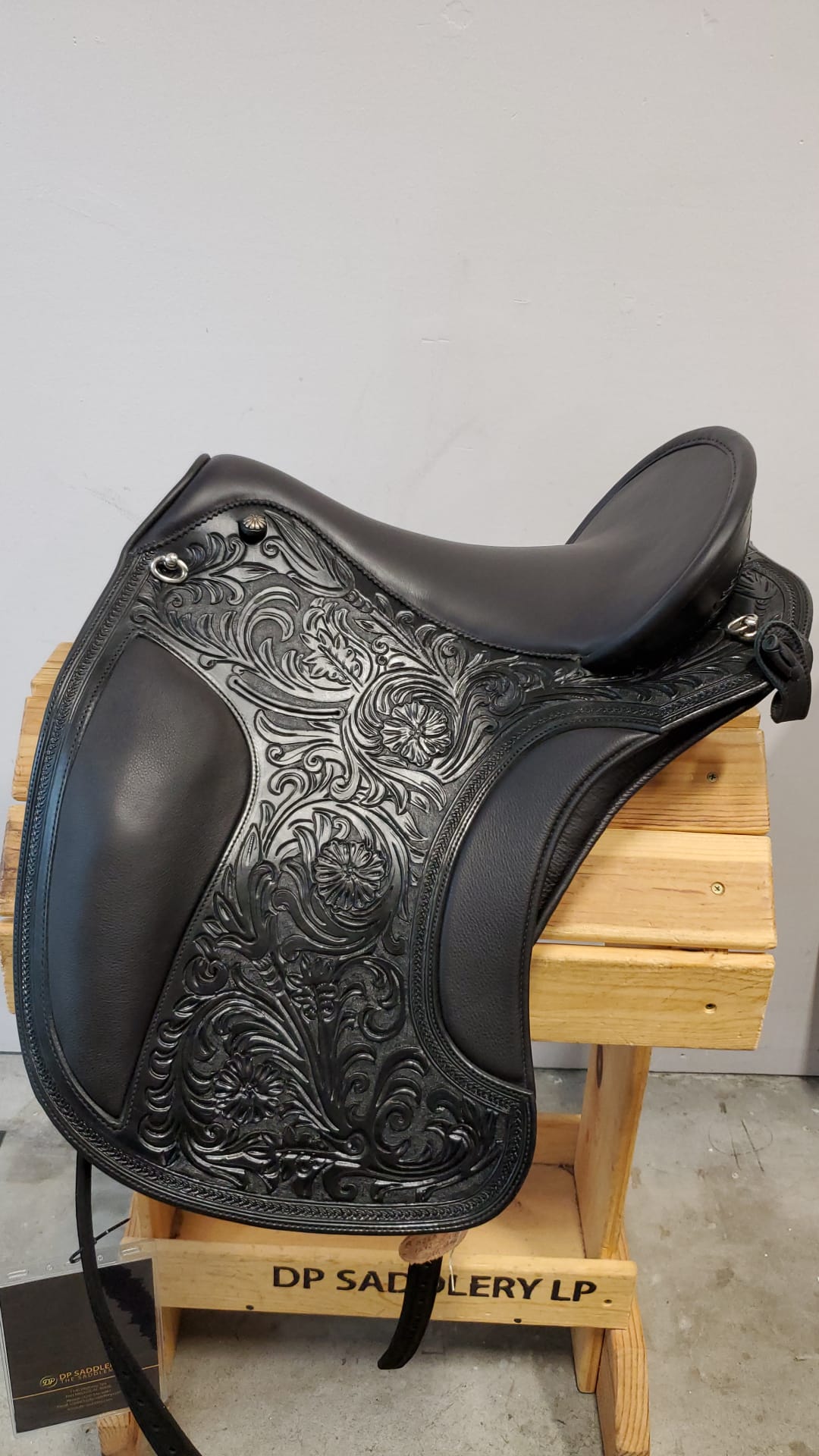 DP Saddlery El Campo is a baroque all purpose saddle. It has an easy twist adjustable gullet system. See How The Gullet Works HERE The girth used with this saddle is a short Dressage style 2 buckle girth. DP Girths HERE