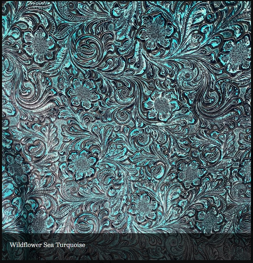 • Leg Inlay Wildflower Sea Turquoise Stamped Leather