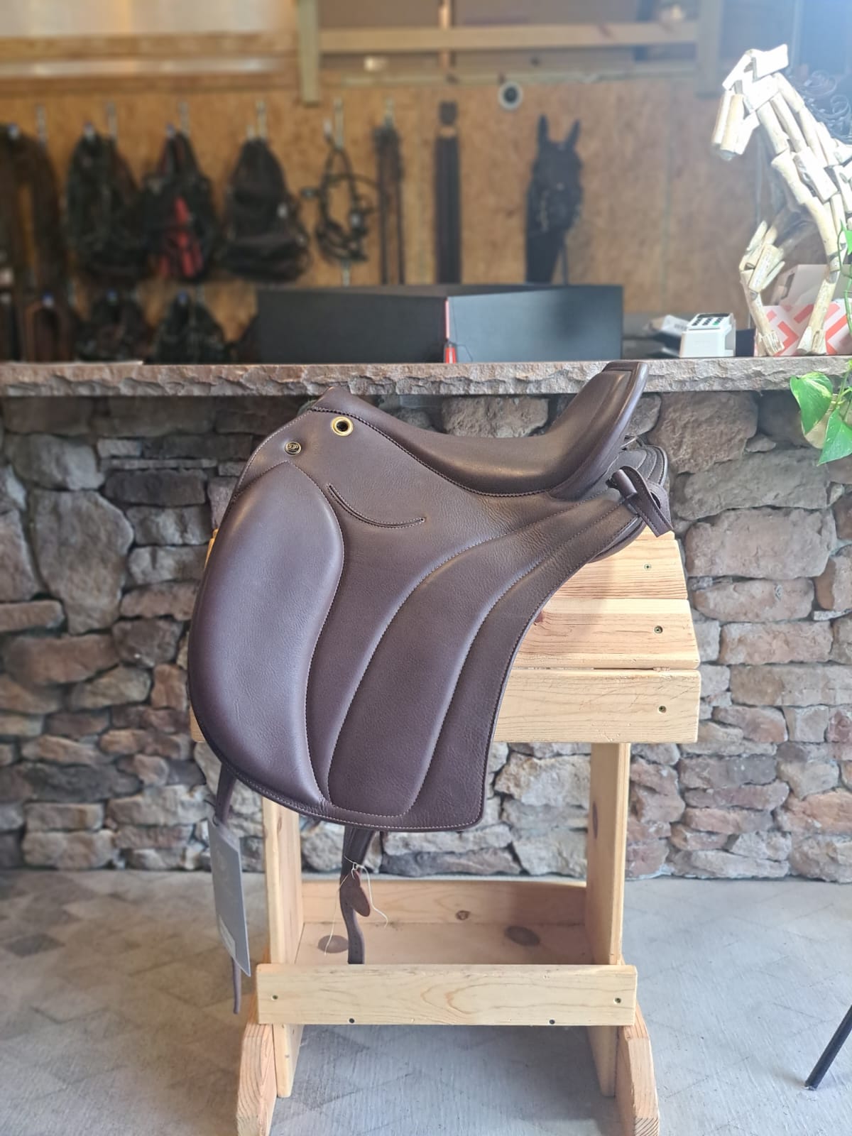 DP Saddlery saddles are built on an Ultra Flex tree. It has an easy twist adjustable gullet system. See How The Gullet Works HERE The girth used with this saddle is a short Dressage style 2 buckle girth. DP Girths HERE