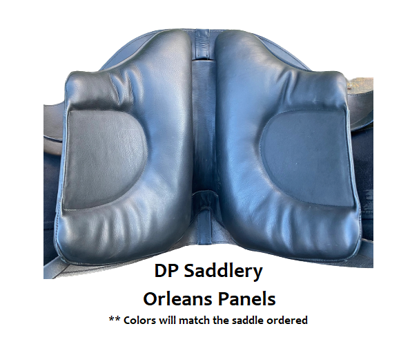 DP Saddlery Orleans & Schooling are classic baroque saddle that is similar to the Ronda. The Orleans has saddle leather on the skirting and the Schooling has nubuck/nappa on the skirting.  The seats are very balanced. All have an easy twist adjustable gullet system. See How The Gullet Works HERE The girth used with this saddle is a short Dressage style 2 buckle girth. DP Girths HERE