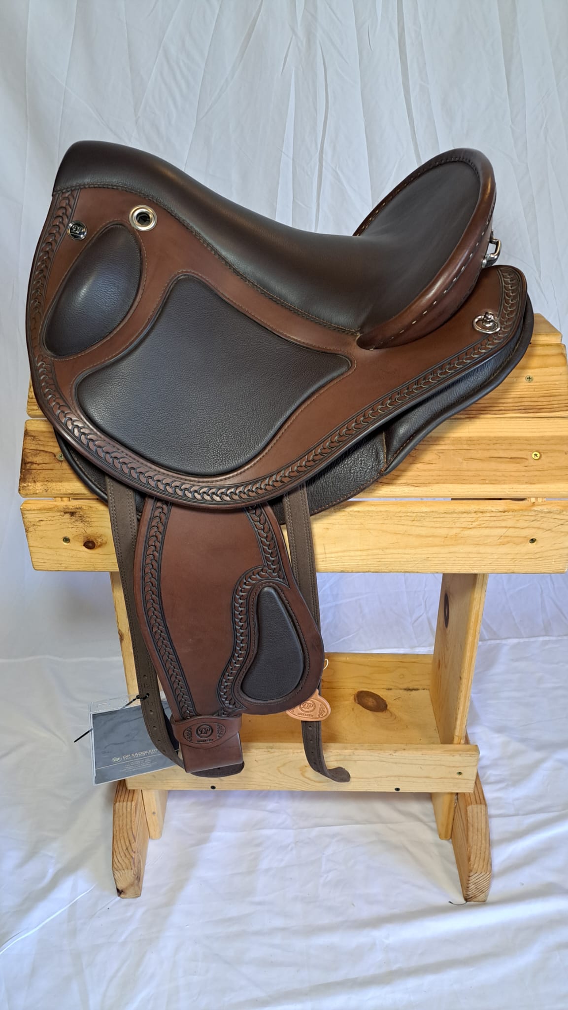 The  broad sit bones makes it comfortable for long rides. Narrower twist that is not going to ride up on you. Similar seat to the El campo (dressage/English style flap) but add on the Fenders, and thigh blocks. The blocks are not there to interfere with your motion just there if you need them. The soft leg area on the skirt under the leg helps keep a close contact feel while minimizing the time it takes to break in the saddle. Soft areas can be filled in with any of the Nubuck or Nappa colors that DP has available. Express yourself with color or stay simple. We can get you set up with your dream DP saddle! If we don't have the size or color you need we can build it for you.