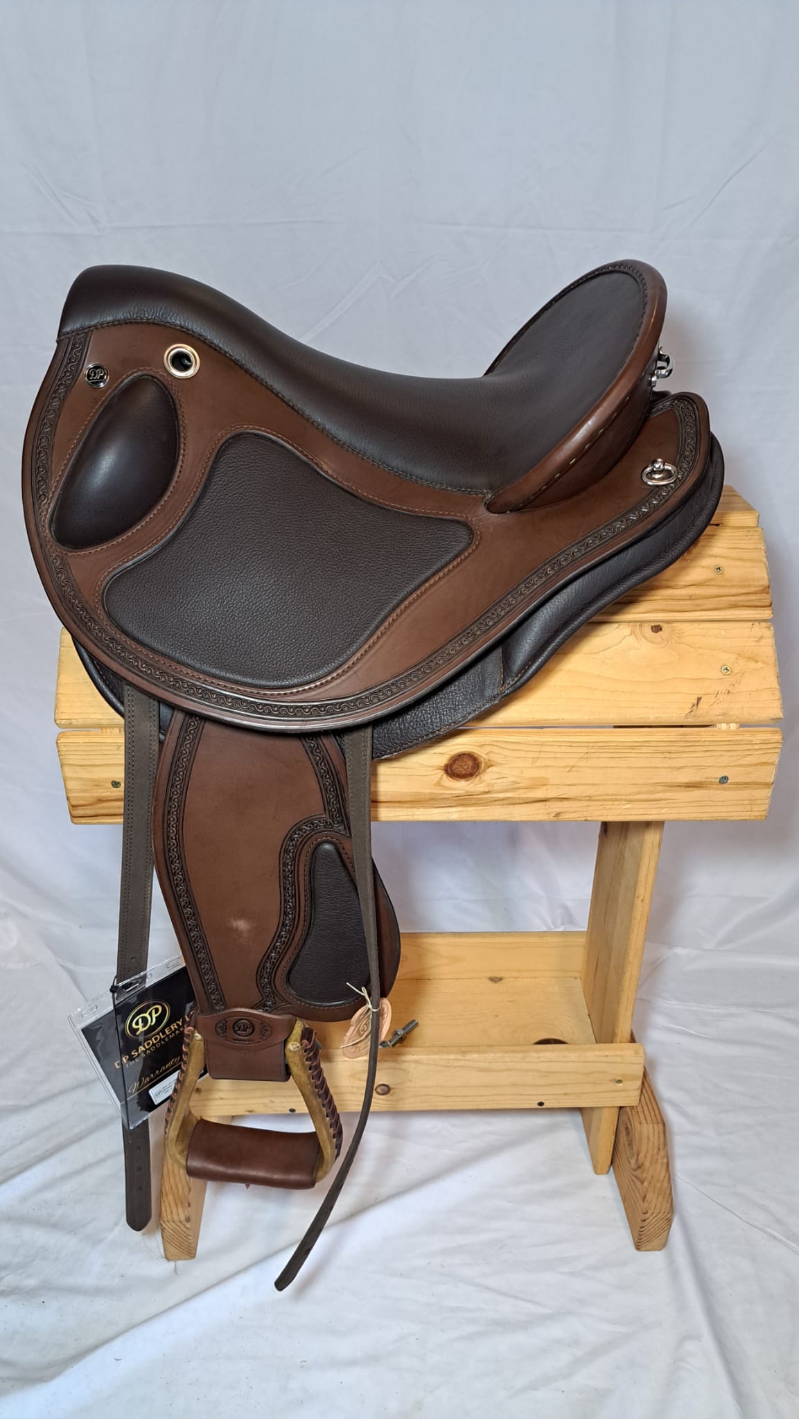 The  broad sit bones makes it comfortable for long rides. Narrower twist that is not going to ride up on you. Similar seat to the El campo (dressage/English style flap) but add on the Fenders, and thigh blocks. The blocks are not there to interfere with your motion just there if you need them. The soft leg area on the skirt under the leg helps keep a close contact feel while minimizing the time it takes to break in the saddle. Soft areas can be filled in with any of the Nubuck or Nappa colors that DP has available. Express yourself with color or stay simple. We can get you set up with your dream DP saddle! If we don't have the size or color you need we can build it for you.