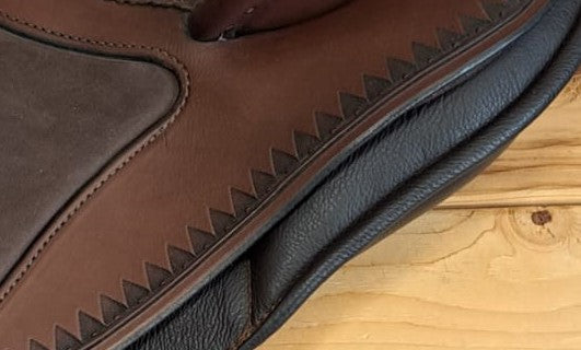 The  broad sit bones makes it comfortable for long rides. Narrower twist that is not going to ride up on you. Similar seat to the El campo (dressage/English style flap) but add on the Fenders, and thigh blocks. The blocks are not there to interfere with your motion just there if you need them. The soft leg area on the skirt under the leg helps keep a close contact feel while minimizing the time it takes to break in the saddle. Soft areas can be filled in with any of the Nubuck or Nappa colors that DP has available. Express yourself with color or stay simple. We can get you set up with your dream DP saddle! If we don't have the size or color you need we can build it for you.