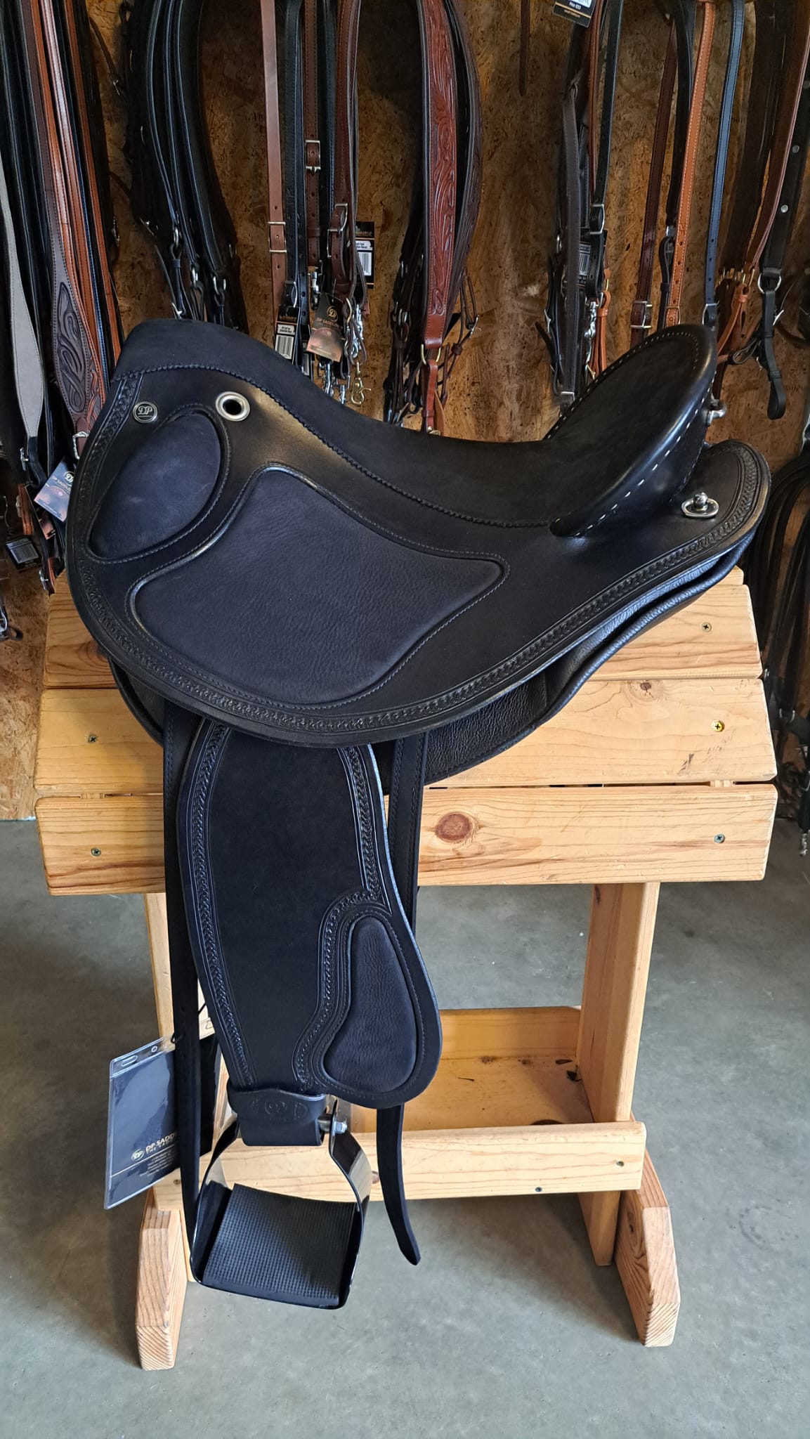 The  broad sit bones makes it comfortable for long rides. Narrower twist that is not going to ride up on you. Similar seat to the El campo (dressage/English style flap) but add on the Fenders, and thigh blocks. The blocks are not there to interfere with your motion just there if you need them. The soft leg area on the skirt under the leg helps keep a close contact feel while minimizing the time it takes to break in the saddle. Soft areas can be filled in with any of the Nubuck or Nappa colors that DP has available. Express yourself with color or stay simple. We can get you set up with your dream DP saddle! If we don't have the size or color you need we can build it for you.