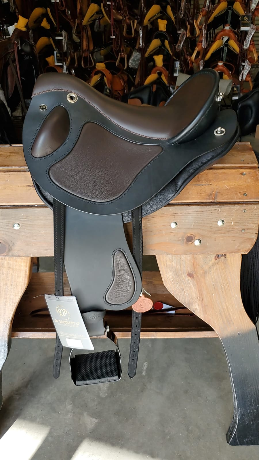 The  broad sit bones makes it comfortable for long rides. Narrower twist that is not going to ride up on you. Similar seat to the El campo (dressage/English style flap) but add on the Fenders, and thigh blocks. The blocks are not there to interfere with your motion just there if you need them. The soft leg area on the skirt under the leg helps keep a close contact feel while minimizing the time it takes to break in the saddle. Soft areas can be filled in with any of the Nubuck or Nappa colors that DP has available. Express yourself with color or stay simple. We can get you set up with your dream DP saddle! If we don't have the size or color you need we can build it for you.