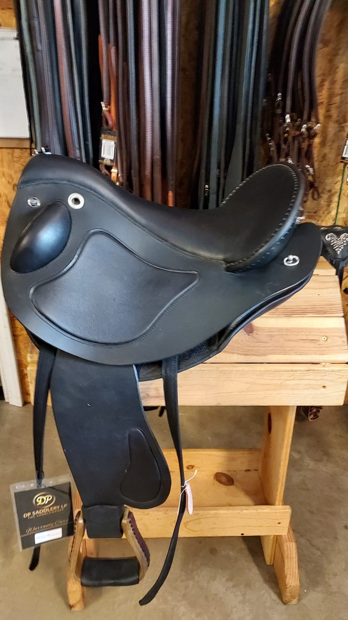 The  broad sit bones makes it comfortable for long rides. Narrower twist that is not going to ride up on you. Similar seat to the El campo (dressage/English style flap) but add on the Fenders, and thigh blocks. The blocks are not there to interfere with your motion just there if you need them. The soft leg area on the skirt under the leg helps keep a close contact feel while minimizing the time it takes to break in the saddle. Soft areas can be filled in with any of the Nubuck or Nappa colors that DP has available. Express yourself with color or stay simple. We can get you set up with your dream DP saddle! If we don't have the size or color you need we can build it for you.