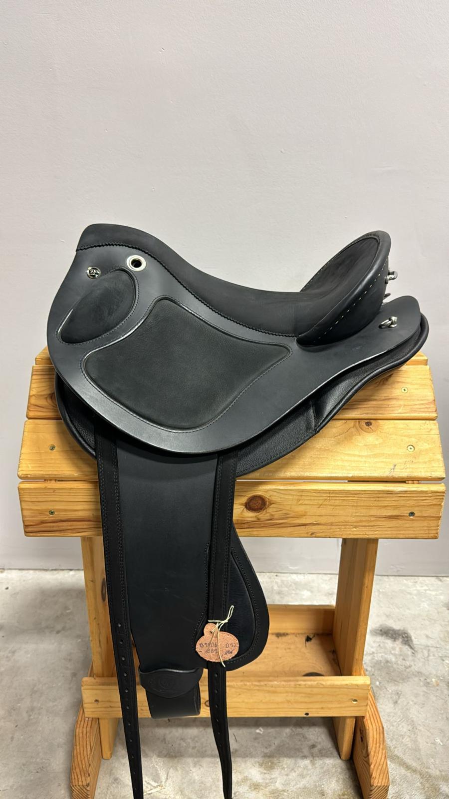 The  broad sit bones makes it comfortable for long rides. Narrower twist that is not going to ride up on you. Similar seat to the El campo (dressage/English style flap) but add on the Fenders, and thigh blocks. The blocks are not there to interfere with your motion just there if you need them. The soft leg area on the skirt under the leg helps keep a close contact feel while minimizing the time it takes to break in the saddle. Soft areas can be filled in with any of the Nubuck or Nappa colors that DP has available. Express yourself with color or stay simple. We can get you set up with your dream DP saddle! If we don't have the size or color you need we can build it for you.