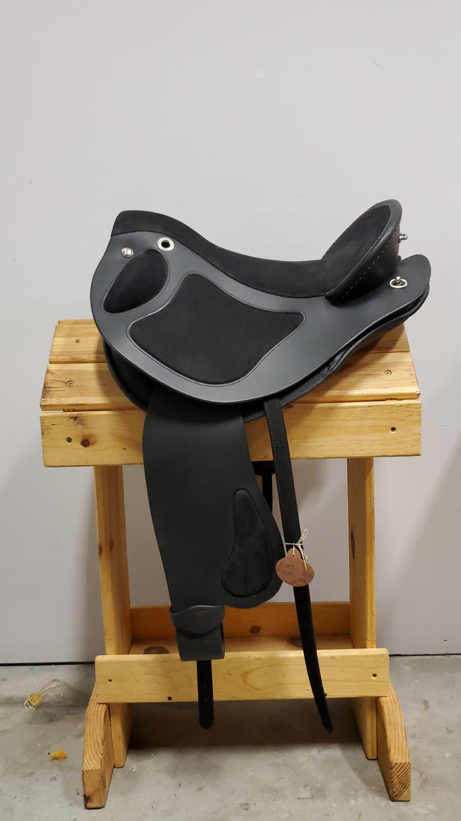 The  broad sit bones makes it comfortable for long rides. Narrower twist that is not going to ride up on you. Similar seat to the El campo (dressage/English style flap) but add on the Fenders, and thigh blocks. The blocks are not there to interfere with your motion just there if you need them. The soft leg area on the skirt under the leg helps keep a close contact feel while minimizing the time it takes to break in the saddle. Soft areas can be filled in with any of the Nubuck or Nappa colors that DP has available. Express yourself with color or stay simple. We can get you set up with your dream DP saddle! If we don't have the size or color you need we can build it for you.