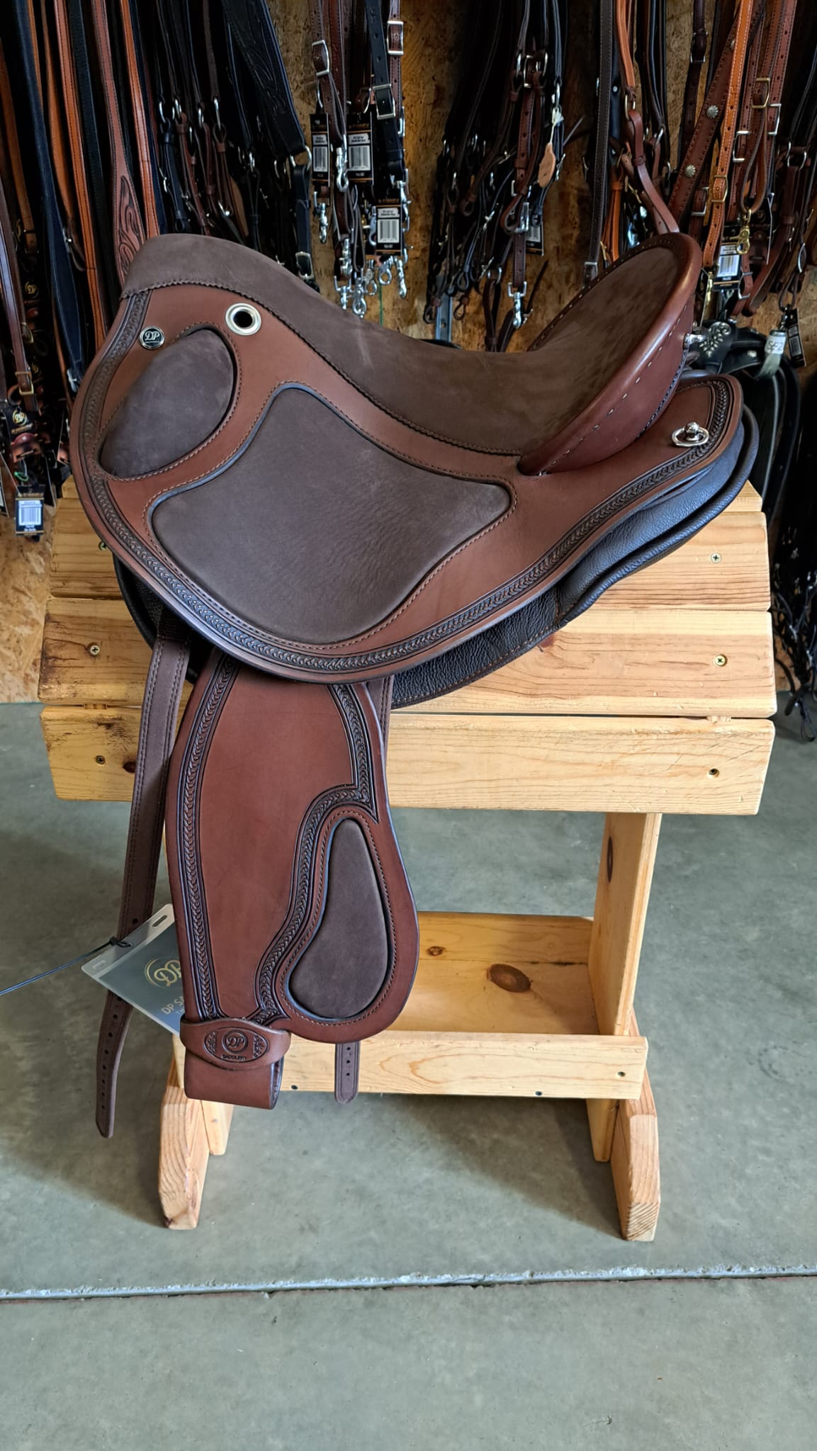 The  broad sit bones makes it comfortable for long rides. Narrower twist that is not going to ride up on you. Similar seat to the El campo (dressage/English style flap) but add on the Fenders, and thigh blocks. The blocks are not there to interfere with your motion just there if you need them. The soft leg area on the skirt under the leg helps keep a close contact feel while minimizing the time it takes to break in the saddle. Soft areas can be filled in with any of the Nubuck or Nappa colors that DP has available. Express yourself with color or stay simple. We can get you set up with your dream DP saddle! If we don't have the size or color you need we can build it for you.