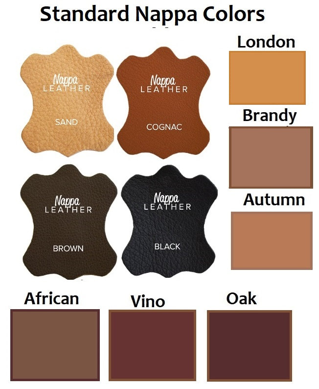 - Stitching Colors: white, beige, gray, brown, black, red, cognac or any of the Nappa leather colors.