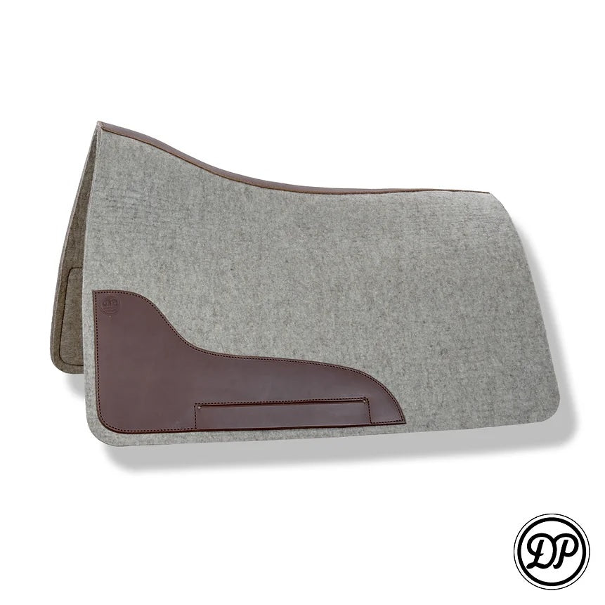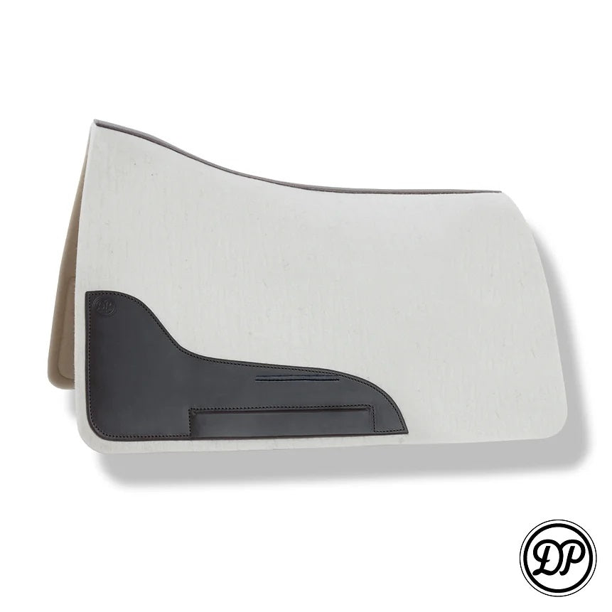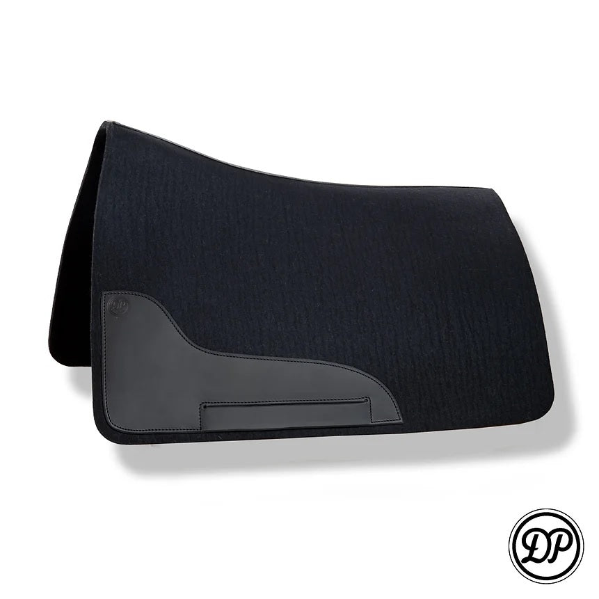 The DP Saddlery real wool saddle pad is designed specifically for the DP Quantum saddle line. Natural wool breaths and wicks sweat better for the horse. The pads are about 1/3 inch thick but can vary because of the natural product material. Some items are ready to ship, others can be custom ordered to match your saddle. Custom orders take about 3 months to make.