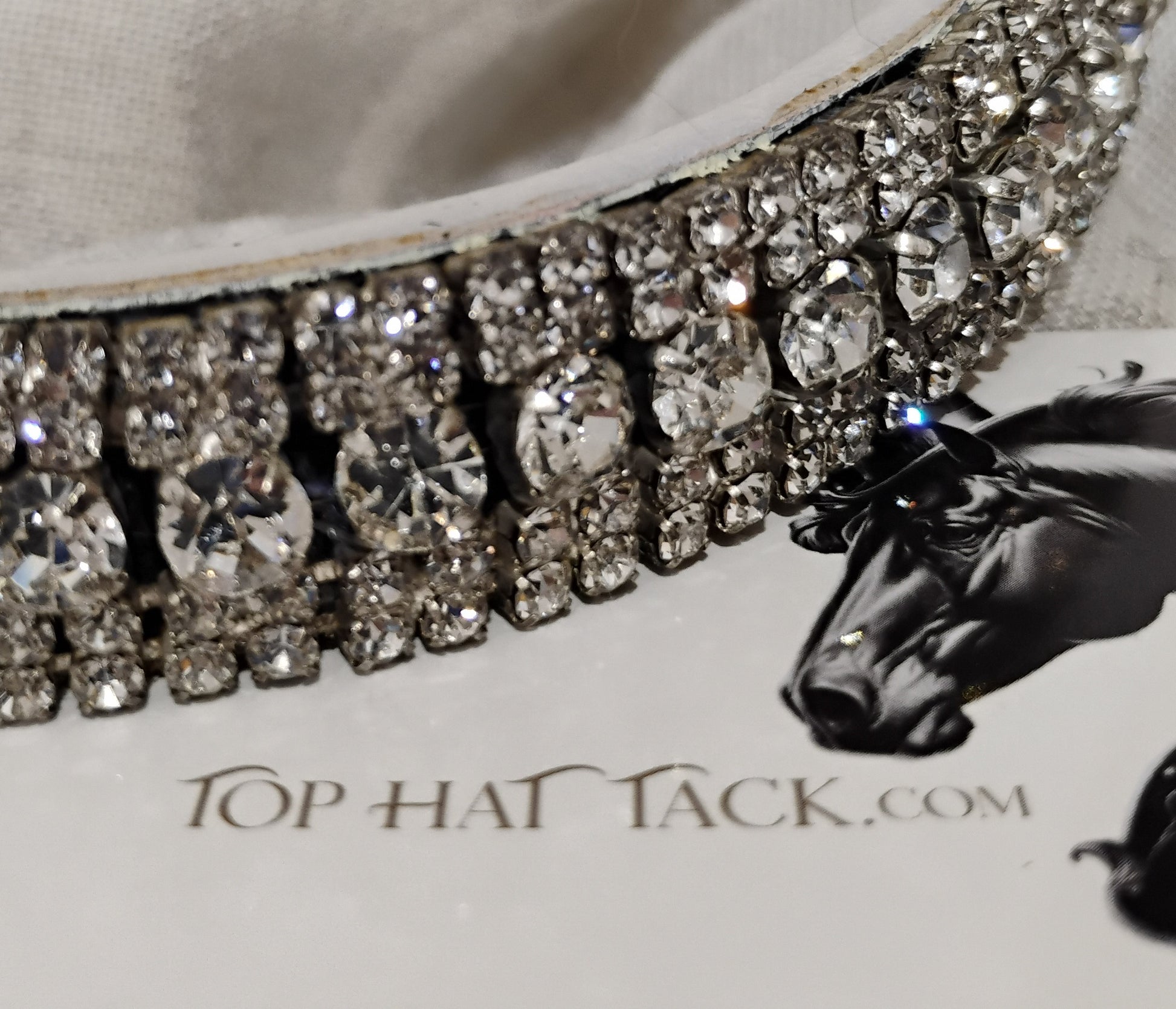 Eye catching white clear crystal browband with large round center stones is sure to look good on your horse.