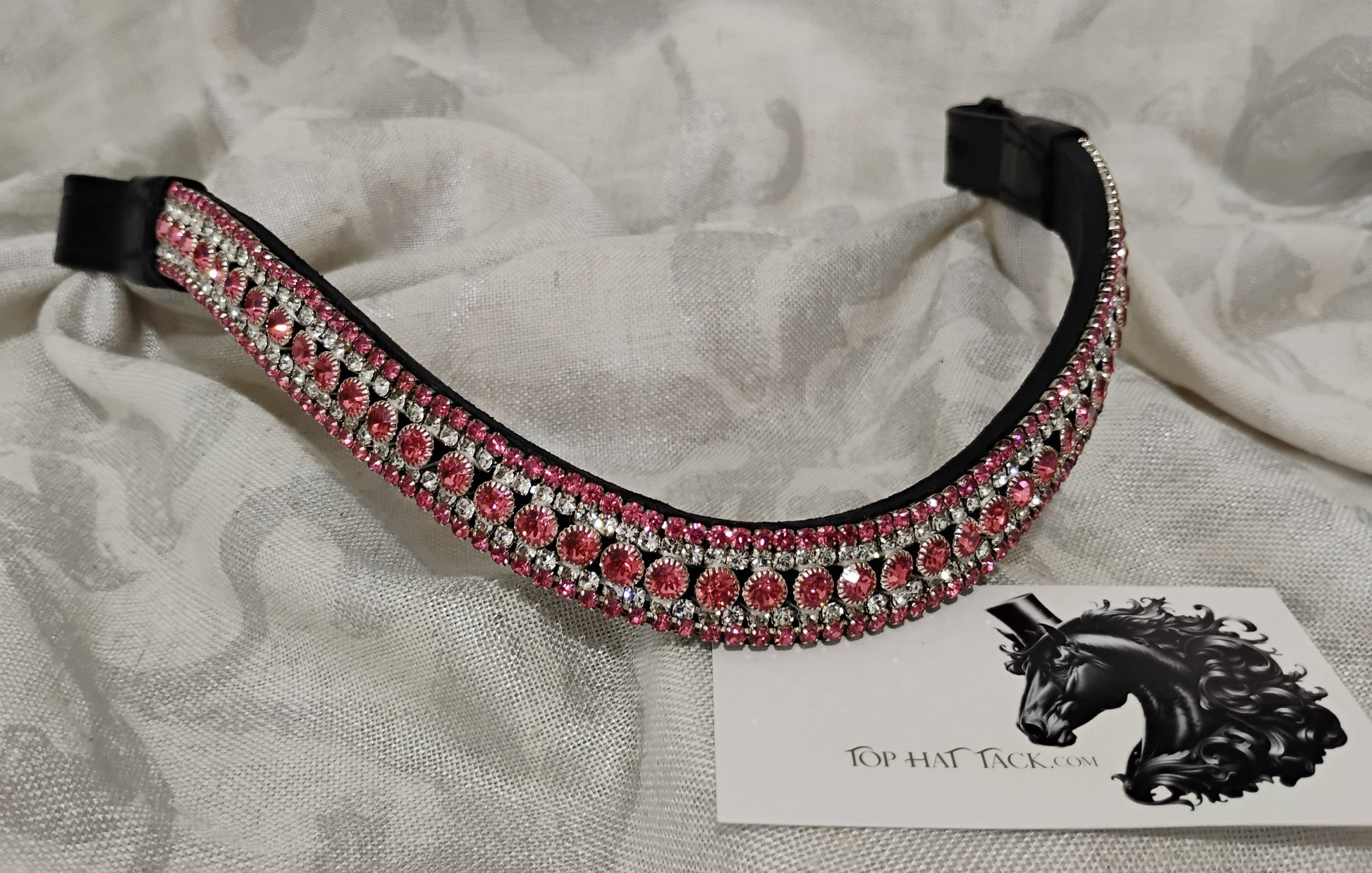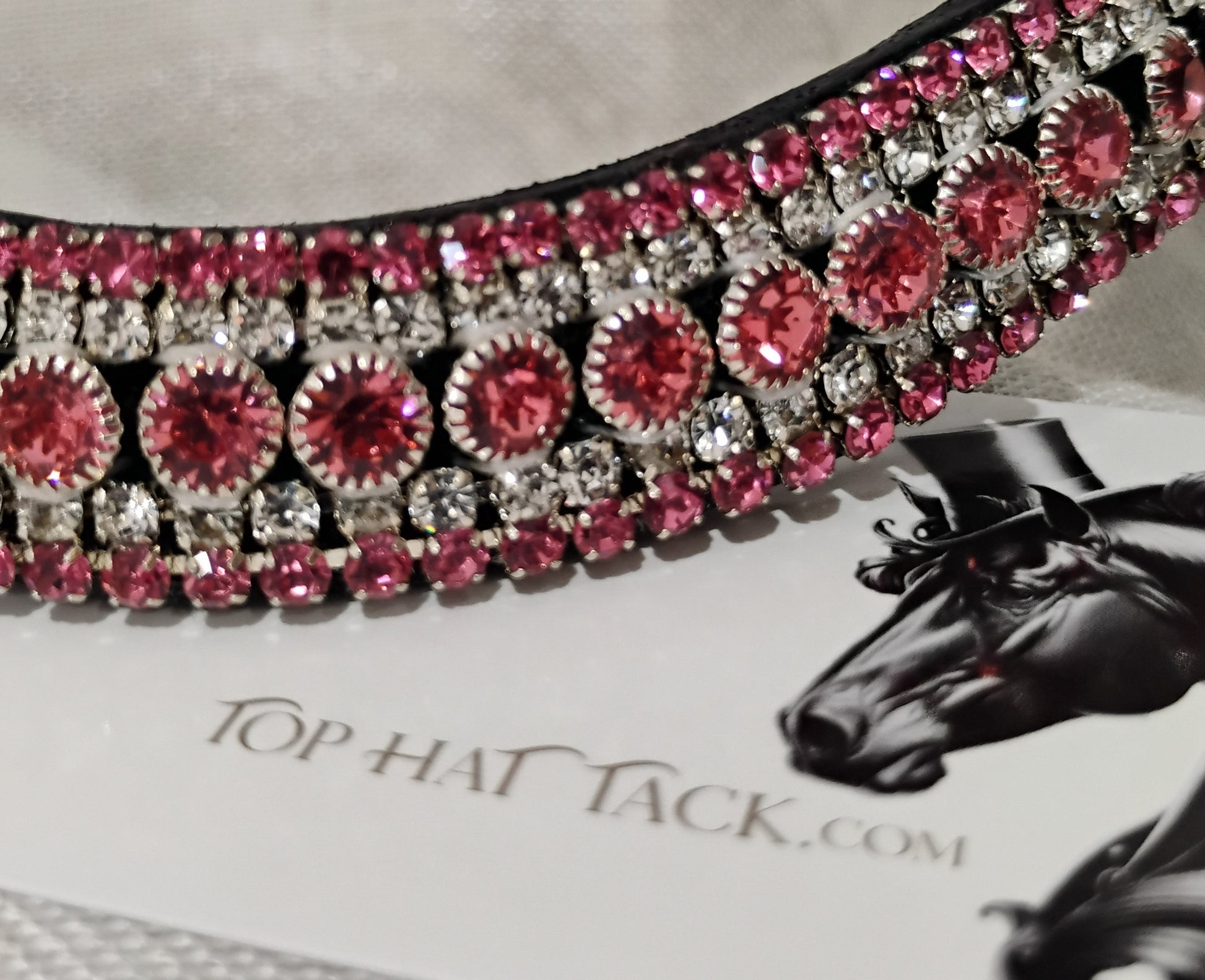 Eye catching Pink and clear browband with large round center stones is sure to look good on your horse.